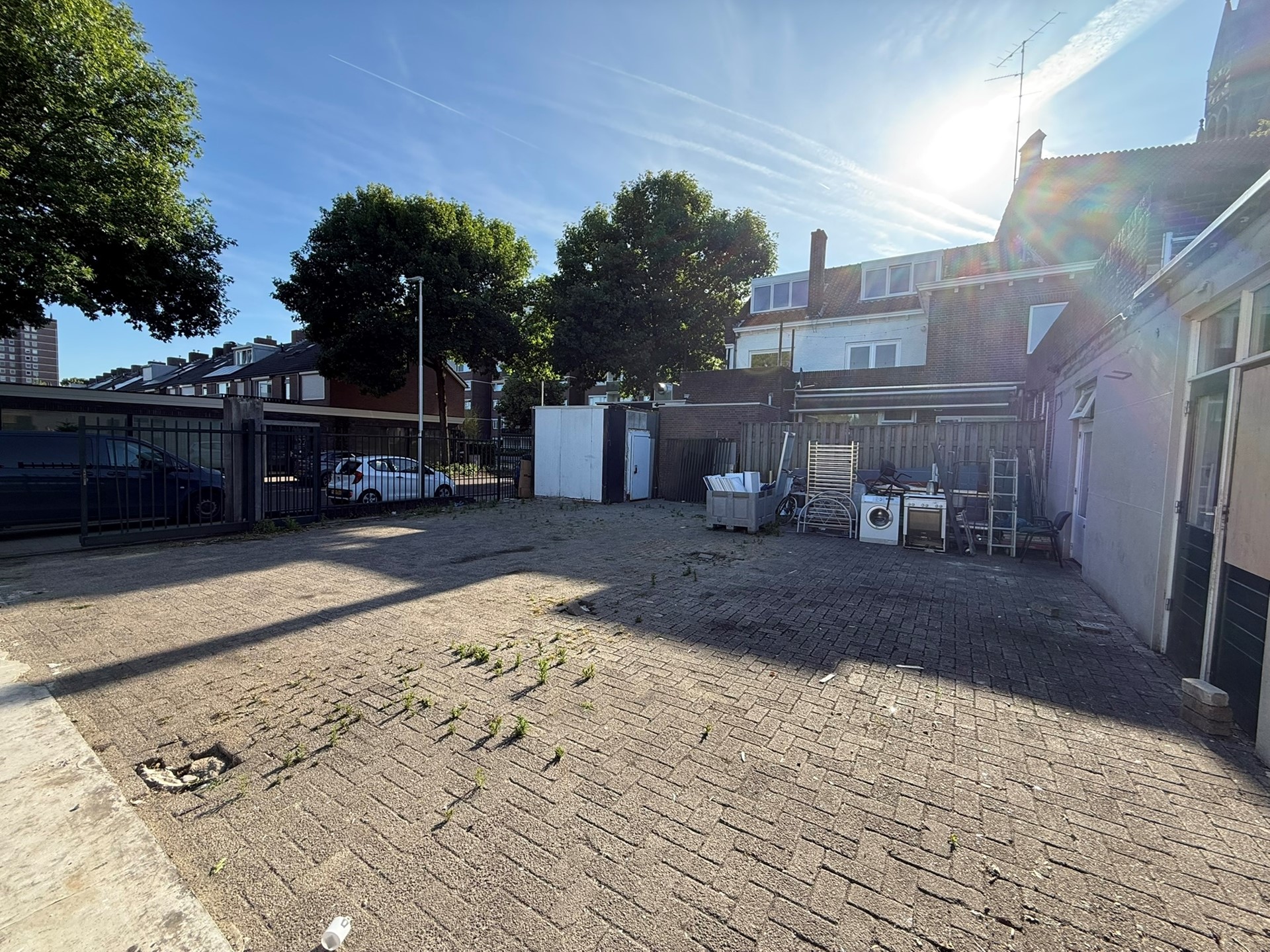 Er zijn diverse parkeerplaatsen beschikbaar op het afgesloten terrein.